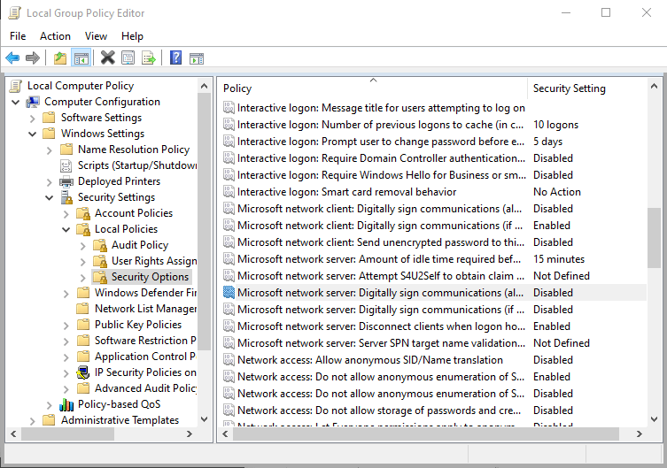 - Microsoft Network Client: Digitally Sign Communications (if server agrees)