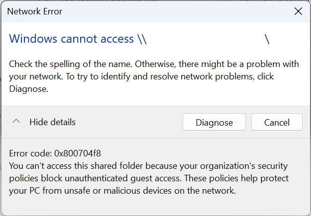 Fix lỗi Erorr code: 0x800704f8. You can’t access this shared folder because your organization’s security policies block